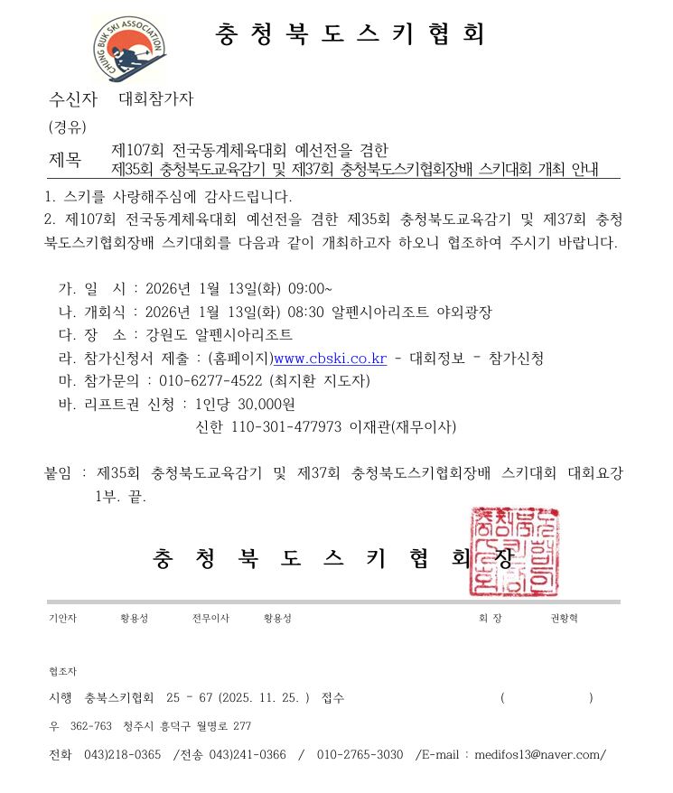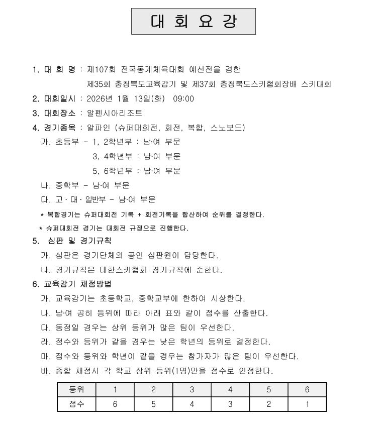 Á¦35ȸ ÃæÃ»ºÏµµ±³À°°¨±â ¹× Á¦37ȸ ÃæÃ»ºÏµµ½ºÅ°ÇùȸÀå¹è ½ºÅ°´ëȸ °³ÃÖ ¾È³»