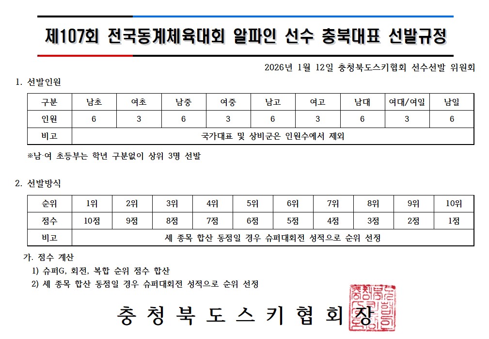 Á¦107ȸ Àü±¹µ¿°èüÀ°´ëȸ ¾ËÆÄÀÎ ¼±¼ö ÃæºÏ´ëÇ¥ ¼±¹ß±ÔÁ¤