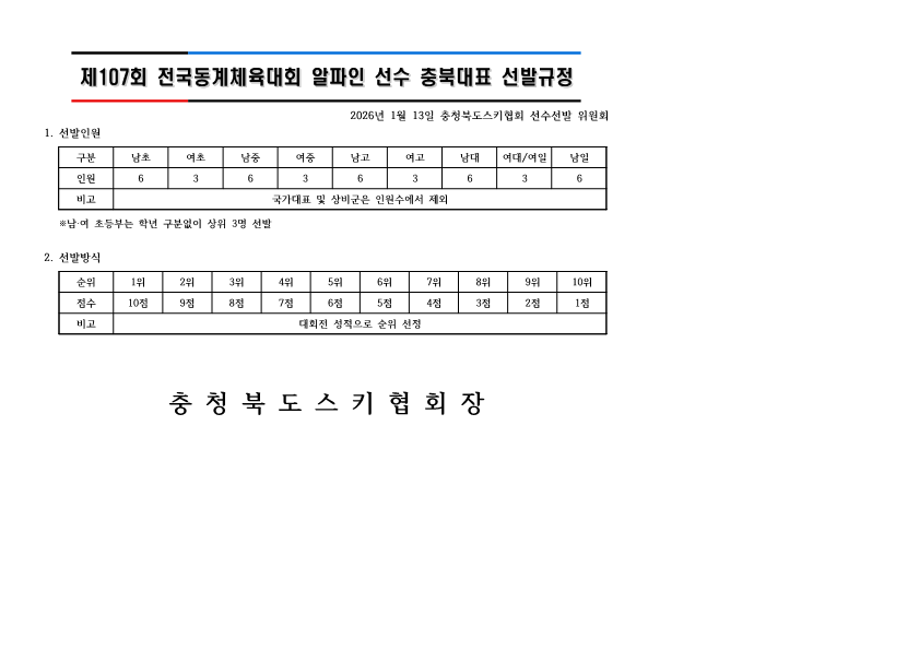 Á¦107ȸ Àü±¹µ¿°èüÀ°´ëȸ ¾ËÆÄÀÎ ¼±¼ö ÃæºÏ´ëÇ¥ ¼±¹ß±ÔÁ¤ º¯°æ ¾È³»